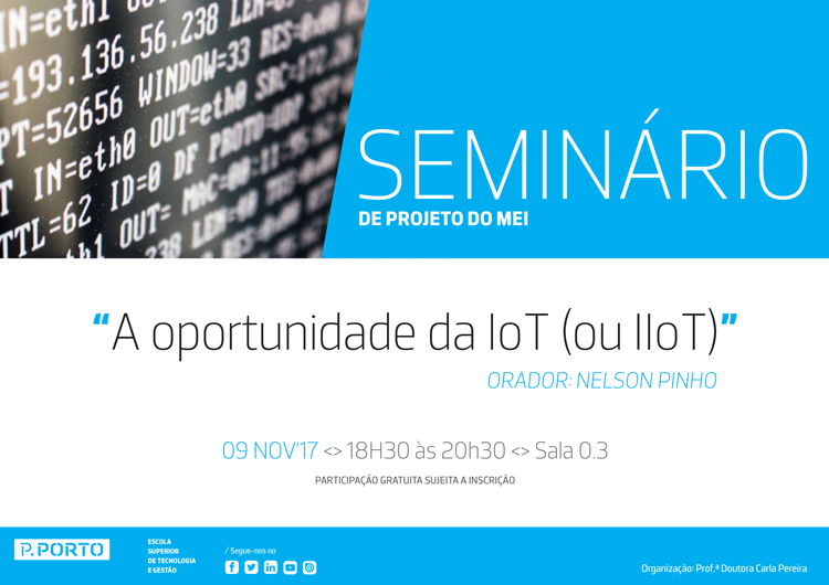 A primeira aula decorre já amanhã dia 9 de novembro das 18h30 às 20h30 com a presença de Nelson Pinho com a apresentação: “A oportunidade da IoT (ou IIoT)”