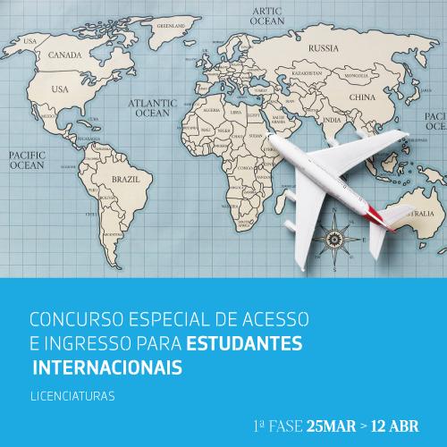 O período de candidatura para a 1ª fase do Concurso Especial de Acesso e Ingresso a Estudantes Internacionais para o ano letivo 2024/2025 abriu no dia 25 de março. O concurso destina-se a estudantes detentores de um diploma do ensino secundário, que não tenham nacionalidade de países da União Europeia.
