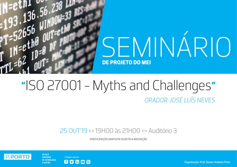 Entrada > Notícias > Seminário de Projeto de MEI | ISO 27001 - Myths and Challenges