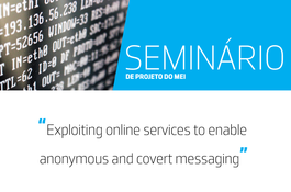 No dia 28 de outubro de 2022, Pedro Guilherme Alves de Sousa fará a apresentação do artigo científico: “Exploiting Online Services to Enable Anonymous and Confidential Messaging”, da autoria de Pedro Sousa, António Pinto e Pedro Pinto, Journal of Cybersecurity and Privacy, 2, pages 700-713, 2022.